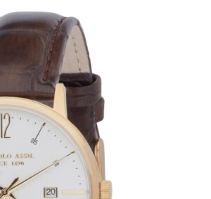 Zegarek męski U.S. Polo Assn. model USP7279YG to przykład wyrafinowanego połączenia elegancji z nutą sportowej dynamiki, idealny dla mężczyzn ceniących sobie zarówno styl, jak i funkcjonalność. Jasna, biała tarcza z linearnymi indeksami zapewnia doskonałą czytelność, a żółte złoto pokrywające kopertę dodaje urządzeniu szlachetności i prestiżu. Okrągła, złota koperta o średnicy 40mm kontrastuje z brązowym paskiem ze skóry, co nadaje temu modelowi wyjątkowy, sportowo-elegancki charakter. Stal szlachetna użyta do produkcji koperty oraz odporność na zachlapania do 30m gwarantują trwałość i niezawodność, stawiając zegarek USP7279YG w rzędzie godnych rekomendacji czasomierzy dla nowoczesnego mężczyzny.
