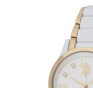 Damski zegarek U.S. Polo Assn. model USP8382YG wyróżnia się swoim wyjątkowym połączeniem elegancji i nowoczesnego designu modowego. Oparty na mechanizmie kwarcowym Miyota, ten czasomierz jest nie tylko niezawodny, ale również oszałamia swoją estetyką. Biała, stworzona z wysokiej jakości stali szlachetnej koperta oraz bransoleta z białym i żółtym odcieniem dodaje urzekającego uroku, który idealnie komponuje się z jasną, białą tarczą ozdobioną rzymskimi cyframi. Delikatne nanoszenie koloru metodą PVD/IP zapewnia trwałość i odporność na zarysowania. Oprócz tego, zegarek charakteryzuje się okrągłą kopertą o średnicy 33mm, co czyni go dyskretną, ale zauważalną ozdobą na każdej damskiej ręce. Elegant Fashion styl zegarka to doskonały wybór dla kobiet ceniących klasykę połączoną z nowoczesnymi trendami.
