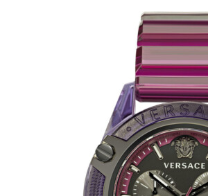 Męski zegarek Versace o modelu VEZ701423 to kwintesencja sportowo-eleganckiego stylu, charakterystycznego dla tej luksusowej marki. Wykonany z trwałego tworzywa sztucznego z kolorowymi akcentami czerni, czerwieni i fioletu, model ten wyraźnie rysuje się na tle innych akcesoriów. Okrągła koperta o średnicy 44mm harmonijnie współgra z elastycznym paskiem gumowym, zapewniając wygodę nawet podczas aktywnego korzystania. Mocne szkło szafirowe gwarantuje odporność na zarysowania, podkreślając zarówno funkcjonalność, jak i wyrafinowany design. Ciemna tarcza z fluoryzującymi wskazówkami i indeksami dodatkowo ułatwia odczyt godziny, podkreślając praktyczny charakter zegarka.