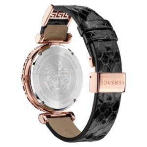 Na wygląd zegarka Versace Palazzo Empire VEDV00719 - zegarek damski składają się:- Kształt koperty Okrągła - Najbardziej popularny kształt koperty występujący w przypadku naręcznych czasomierzy.