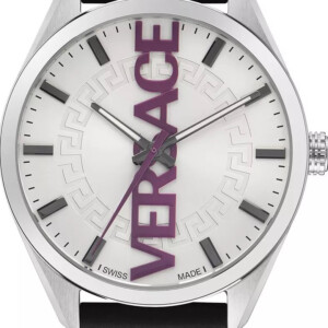 Zegarek męski Versace o modelu VE3H00122 to kwintesencja elegancji, która łączy w sobie zarówno klasyczny, jak i nowoczesny design. Okrągła koperta o średnicy 42mm, wykonana ze stali szlachetnej, prezentuje się niezwykle szlachetnie z jasną tarczą oraz szafirowym szkłem, które jest odporne na zarysowania. Barwy - biały, czarny, fioletowy i srebrny - dodają urzekającej głębi, podkreślając luksusowy charakter zegarka. Gumowy pasek zapewnia wygodę noszenia zarówno podczas oficjalnych, jak i mniej formalnych okoliczności. Ten elegancki dodatek zdecydowanie podkreśli indywidualny styl każdego mężczyzny, będąc odzwierciedleniem prestiżu marki Versace.
