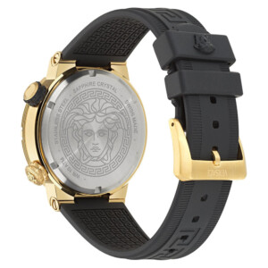 Versace, znane z luksusu i wyszukanego designu, prezentuje zegarek model VE8G00324, który odzwierciedla kultowy styl marki. Czarna tarcza tego zegarka, osadzona w okrągłej, żółtej kopercie, wyraża ponadczasową elegancję z odważnym akcentem, typowym dla Versace. Szkło szafirowe, odporne na zarysowania, zapewnia trwałość i niezmienny połysk, natomiast ekskluzywny skórzany pasek podkreśla jego klasę. Praktyczne funkcje, takie jak datownik i zakręcany dekiel, oraz wodoodporność do 100 metrów, sprawiają, że jest to nie tylko stylowy, ale i funkcjonalny wybór dla miłośników mody ceniących jakość Versace.