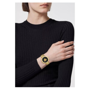 Zegarek Versace, model VE9D00424, to prawdziwe arcydzieło sztuki użytkowej, którym dominuje elegancka czarna tarcza osadzona w okrągłej, polerowanej kopercie ze stali szlachetnej o średnicy 38mm. Grubość koperty wynosząca 12mm zapewnia solidność, jednocześnie nie odciągając uwagi od subtelnych detali, które są charakterystyczne dla luksusowej marki Versace. Wyrafinowana bransoleta wykonana z tego samego kruszcu nadaje zegarkowi współczesny, ale zarazem ponadczasowy charakter, idealny dla osób ceniących sobie zarówno funkcjonalność, jak i prestiżowy wygląd. Wyróżniający się design oraz logo Versace na tarczy to gwarancja, że każdy szczegół podkreśla ekskluzywność i wyjątkowość tego akcesorium.