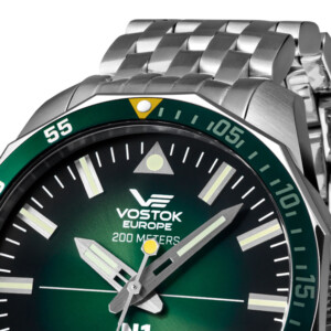 Vostok Europe NH35A-225A710B to wyrazisty zegarek męski, który doskonale oddaje sportowy charakter i dynamiczny styl współczesnego mężczyzny. Zaprojektowany z myślą o wytrzymałości i funkcjonalności, charakteryzuje się okrągłą, solidnie wykonaną kopertą o średnicy 46 mm z odpornego na zarysowania szkła mineralnego. Stal szlachetna w srebrnym kolorze z zielonymi detalami na tarczy podkreśla jego elegancką, ale i sportową estetykę. Zegarek posiada wodoodporność do 200m, co czyni go idealnym towarzyszem nie tylko na co dzień, ale również podczas nurkowania z akwalungiem. Fluorescencyjne wskazówki i indeksy zapewniają czytelność nawet w głębokiej ciemności.