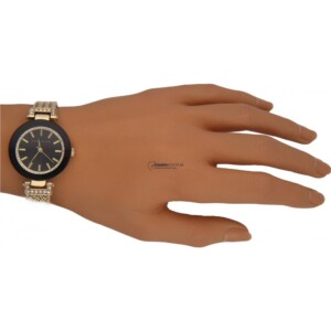 Czarna bogata tarcza jest elementem przyciągającym spojrzenia w zegarku Anna Klein AK1906BKGB. Kreskowe indeksy w kolorze złota oraz drobne złote wskazówki idealnie komponują się z kolorem czerni. Zgrabna bransoleta ze stali szlachetnej pozłacanej w kolorze żółtego złota dodaje wiele kobiecości. Elementem, który rozświetla cały układ są cyrkonie wokół tarczy oraz na początkach bransolety. Jest to idealna propozycja dla kobiet lubiących elementy uchwycone z najnowszych trendów modowych.