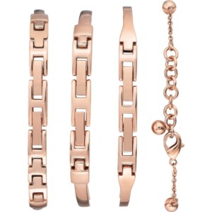Zegarek + 3 bransoletki w kolorze różowego złota, zdobione kryształkami Svarowskiego