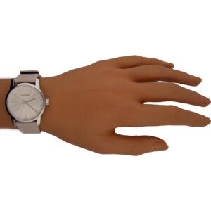 Design zewnętrzny zegarka Calvin Klein K2G231XH opiera się o delikatny, kobiecy kolor różowy, obecny zarówno w mocowaniu jak i analogowej tarczy. Zestawiono, a właściwie podkreślono go stalową kopertą o smukłej budowie. Skórzany pasek, całkowicie „prosty” i minimalistyczny idealnie wpasowuje się w nadgarstek właścicielki, a idealnie dobrany kształt koperty swobodnie leży na ręce, stale pokazując swoje uroki. Obecne na cyferblacie indeksy liniowe oraz wskazówki, zamknięte pod szkłem mineralnym, cechuje przejrzystość. Sama tarcza pokazuje zamiłowanie marki Calvin Klein do „porządku”. Jak widzisz, styl zegarka Calvin Klein K2G231XH pozwoli Ci być sobą, jednocześnie pokazując swój charakter innym.