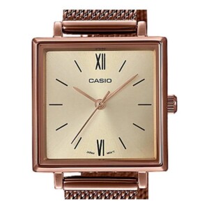 Casio LTP-E155MR-9B jest idealnym wyborem dla kobiet ceniących wyrafinowany styl i elegancję z nutą fashion. Oferując wyjątkową jakość, którą gwarantuje marka Casio, ten zegarek wyróżnia się pozłacaną w kolorze różowego złota, prostokątną kopertą o średnicy 25 mm, co dodaje mu charakteru oraz luksusu. Jasna tarcza idealnie komponuje się z bransoletką wykonaną ze stali szlachetnej, zapewniając trwałość i wygodę noszenia. Dodatkowo szkło mineralne gwarantuje odporność na zarysowania, co w połączeniu z modnym designem tworzy nie tylko praktyczny, ale i estetyczny dodatek do każdego stroju.
