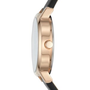 Elegancki zegarek damski DKNY model NY2641 to kwintesencja nowoczesnego stylu Fashion zdobywającego serca wielbicielek światowych trendów. Okrągła koperta o średnicy 32mm, wykonana z wysokiej jakości stali szlachetnej i pokryta przez proces PVD/IP na odurzający kolor różowego złota, ukazuje luksusową estetykę i dbałość o detale. Tarcza w głębokim, ciemnym odcieniu podkreśla złote, fluorescencyjne wskazówki, które zapewniają wyraźność odczytu nawet po zmroku. Skórzany pasek w eleganckim, różowozłotym kolorze idealnie współgra z pozłacaną kopertą, czyniąc ten zegarek prawdziwym dziełem sztuki na nadgarstku każdej kobiety ceniącej modę i klasę.