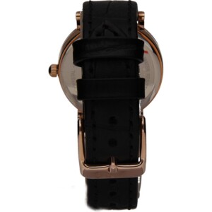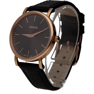 Zegarek damski Doxa o numerze modelu 173.95.101.01 to kwintesencja elegancji i wysokiej klasy. Ten ekskluzywny model jest idealnym połączeniem tradycji szwajcarskiej precyzji i nowoczesnego stylu. Okrągła koperta wykonana ze stali szlachetnej, pokryta metodą PVD/IP na kolor różowego złota, dodaje wyrafinowania każdemu strojowi. Ciemna tarcza harmonijnie kontrastuje z jasną tonacją pozłacanej koperty, a szafirowe szkło chroni zegarek przed zarysowaniami. Skórzany pasek zapewnia komfort i dodatkową klasę, czyniąc ten model idealnym wyborem dla każdej kobiety ceniącej luksus i niezawodność.