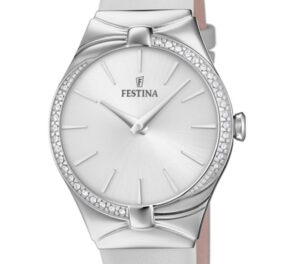 Na wygląd zegarka Festina Only for ladies F203881 składają się:- Materiał wykonania Stal szlachetna - stal szlachetna antyalergiczna (316l) - inaczej nazywana stalą chirurgiczną to najczęściej używany przy produkcji zegarków materiał. Dzięki swoim właściwościom antyalergicznym opartym na znikomej wręcz zawartości niklu uczulać może zaledwie 5% alergików. Dzięki temu, że nie rdzewieje i nie zmienia koloru, zapewnia wysoki komfort użytkowania na długie lata