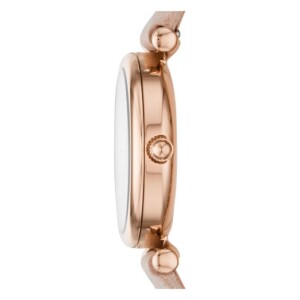 Elegancja i nowoczesny design definiują damski zegarek Fossil model ES4699, doskonały dla kobiety ceniącej modę i jakość. Jego okrągła koperta, wykonana ze szlachetnej stali i pozłacana różowym złotem, nadaje klasy i blasku. Miękki, skórzany pasek zapewnia komfort noszenia, podczas gdy jasna tarcza zwiększa czytelność i dodaje subtelności. Średnica koperty wynosząca 28mm idealnie pasuje do damskiego nadgarstka, a minimalistyczny styl łączy w sobie elementy fashion z klasyczną elegancją. Zegarek został wyposażony w odporność na zachlapania do 30m oraz szkło mineralne, które chroni przed zarysowaniami, co sprawia, że ES4699 stanowi doskonały wybór na każdą okazję.