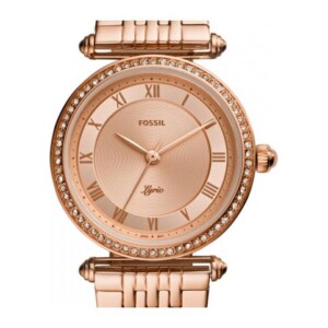 Damski zegarek Fossil, model ES4711, to kwintesencja elegancji i modowego wyrafinowania, który idealnie podkreśli każdy styl. Okrągła koperta o średnicy 32 mm wykonana ze stali szlachetnej, pokryta jest wspaniałym odcieniem różowego złota, co dodaje urządzeniu luksusowego blasku. Jasna tarcza harmonizuje z pozłacaną bransoletą, tworząc spójną i atrakcyjną całość. Dodatkowym atutem jest zastosowanie trwałego szkła mineralnego, które efektywnie chroni zegarek przed zarysowaniami. Ten model marki Fossil to nie tylko zegarek, ale również elegancki dodatek, który świadczy o dobrym guście i zamiłowaniu do fashion.