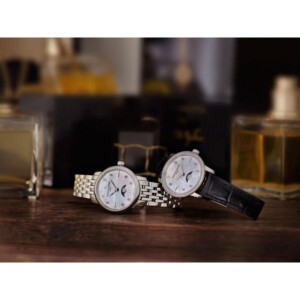 Zegarek damski Frederique Constant, model FC-206MPWD1SD6, łączy w sobie wyrafinowany styl i precyzyjną jakość, charakterystyczną dla tej szwajcarskiej marki. Elegancka, okrągła koperta o średnicy 30 mm wykonana ze stali szlachetnej, ozdobiona jest brylantami i masą perłową, co wnoszą nutę luksusu i wytworności. Jasna tarcza harmonizująca z perłowymi zdobieniami, wyposażona jest w funkcje fazy księżyca i pamięci okrążeń, co stanowi połączenie klasyki z nowoczesną technologią. Pasek wykonany ze skóry dodaje klasy, a szafirowe szkło gwarantujące odporność na zarysowania podkreśla trwałość i niezawodność tego zegarka. Dopełnieniem całości jest wodoodporność do 30 m, umożliwiająca noszenie zegarka bez obaw o jego uszkodzenie podczas codziennych zajęć.
