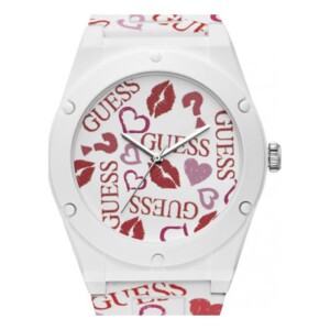 Zapewne się z nami zgodzicie, że styl damskiego zegarka Guess W0979L19 wyróżnia się wśród zegarkowych propozycji innych marek fashion. Głównym motywem występującym zarówno na analogowej tarczy jak i parcianym pasku są różnokolorowe usta oraz logotyp producenta, bez wątpienia rozpoznawany na całym świecie. Zestawiono je z białą kopertą z tworzywa sztucznego i to właśnie wykorzystane materiały zapewniają nam komfort użytkowania tego czasomierza, a jego lekkość niemal pozwala na zapomnienie o jego obecności. Design zegarka Guess W0979L19 podkreśli każdą stylizację i sprawi, że wyróżnimy się z tłumu pokazując nasze indywidualne podejście do dodatków.
