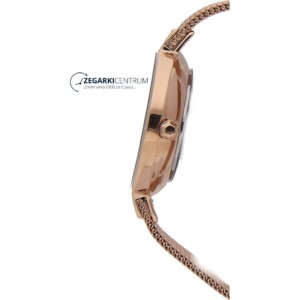 Mimo niewielkich rozmiarów koperty zegarka Karen Millen KM160RGM znajdziemy w niej wielkie, tykające serce. Stanowi je kwarcowy mechanizm, znany głównie z bezawaryjności oraz dokładności wskazywanych danych. Efekty jego pracy wskazuje analogowy, jasny cyferblat, który designem idealnie komponuje się z zewnętrznymi elementami. Różowozłote cyfry arabskie i wskazówki to sposób na łatwe odczytanie obecnej godziny. Bez wątpienia zegarek Karen Millen KM160RGM to model na nawet najbardziej oficjalne okazje, kiedy szczególnie zależy nam na perfekcyjnym wyglądzie. To właśnie ten damski czasomierz pozwoli nam czuć się komfortowo i pewnie, a naszą nienaganną prezencję docenią wszyscy z naszego otoczenia.