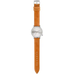 Damski zegarek Komono KOM-W2461 to jeden z niewielu czasomierzy tego producenta, w którym szczególne znaczenie ma mocowanie, skórzany pasek. Zaproponowano go w ciekawym, pomarańczowym kolorze, który znacząco urozmaica stonowaną stylistykę okrągłej koperty, wykonanej z antyalergicznej stali szlachetnej. Jej średnica wynosi 36 milimetrów, dzięki czemu wpasuje się w niemal każdy damski nadgarstek, nawet ten bardzo szczupły.