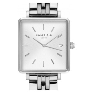 Na wygląd zegarka Rosefield Mini Boxy QMWSSQ020 składają się:- Kształt koperty Prostokątna / kwadratowa - Co raz bardziej popularny kształt, który spotykamy głównie w modelach eleganckich i casualowych.