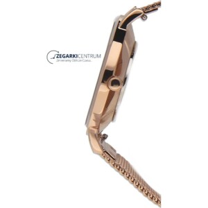 Mocowanie zegarka Rosefield TBR-T59, bransoleta typu mesh to sposób na idealne wpasowanie tego czasomierza do nadgarstka właścicielki. Zakończono ją zapięciem g-link, które samodzielnie i bez problemu możemy przesuwać, regulując tym samym rozmiar mocowania. Kolejny, główny element tego modelu to okrągła, smukła koperta o grubym ringu. Wykonana została z antyalergicznej stali szlachetnej, dlatego polecana jest również dla kobiet z delikatną skórą, skłonną do alergii. Na oba elementy nałożono kolor różowego złota za pomocą metody PVD, gwarantującej nam dużą odporność na ścieranie. Jeżeli chodzi o czarny kolor w zegarku Rosefield TBR-T59 to znajdziemy go na analogowej tarczy, schowanej pod odpornym na stłuczenia szkłem mineralnym. Zestawiono go z prostymi indeksami liniowymi i wskazówkami, podkreślającymi dodatkowo logotyp producenta. To właśnie tak skromne tarcze są już ikoną marki Rosefield, wykonane z perfekcją i dbałością o każdy szczegół.