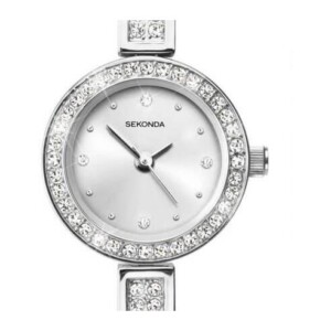 Tarcza - srebrna, analogowa ozdobiona kryształkami.