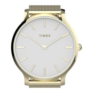 Zegarek damski Timex Transcend TW2T74100 - to damski zegarek o nowoczesnym designie i ponad przeciętnym wyglądzie. W zegarku został użyty mechanizm kwarcowy . A tworzywo z którego zostały wykonane tarcza oraz pasek to stal szlachetna niewywołująca reakcji alergicznych oraz nie podrażniająca skóry. Klasyczne wzornictwo: okrągła tarcza oraz kolorystyka: jasny kolor tarczy połączony ze złotym kolorem paska typu mesh sprawiają, że stanowi on idealne uzupełnienie wszystkich stylizacji, zarówno codziennych jak i tych formalnych i wymagających odrobiny elegancji. Klasyczny analogowy cyferblat pokrywa mineralne szkiełko, cechujące się wysoką odpornością na stłuczenia oraz zarysowania. Szerokość koperty wynosi 38.00 MM. Zegarek nakreślony jest podstawową normą wodoszczelności 30 M, która oznacza odporność na zachlapania.
