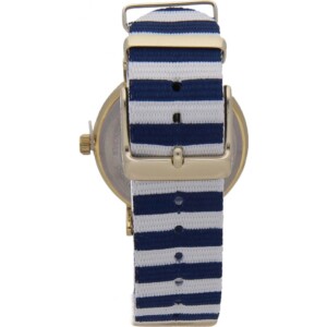 Smukła, okrągła koperta w złotej kolorystyce to element centralny zegarka Timex Damskie Weekender TW2P91900. Umieszczona została na materiałowym pasku w barwach białych oraz granatowych, nawiązujących do koloru morza. Biała tarcza wyposażona została w indeksy liniowe oraz wskazówki w kolorze koperty, przez co idealnie komponują się z całą kompozycją. Za dokładność danych odpowiada mechanizm kwarcowy. Dzięki szkłu mineralnemu ochraniającemu tarczę zegarek jest odporny na zachlapania i zarysowania. Ten ponadczasowy model skradnie serca wszystkich kobiet, bez względu na styl jaki lubią.