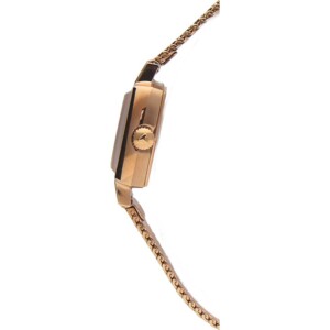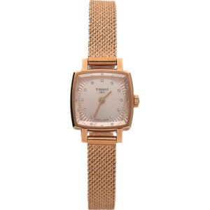 Zegarek Tissot Lovely T058.109.33.456.00 to model w pięknym kolorze różowego złota, który przypadnie do gustu każdej fashionistce. Prostokątna, różowo-złota koperta idealnie współgra z analogową tarczą w tym samym kolorze. Bransoleta typu MESH również została utrzymana w barwach złota i różu. Tarcza zegarka została przyozdobiona delikatnymi kryształkami cyrkonii, co nadaje zegarkowi delikatnego, uroczego charakteru. Model wykonano z antyalergicznej stali szlachetnej wysokiej jakości. Materiał ten nie powoduje uczuleń i nie podrażnia skóry. Poziom wodoodporności zegarka to 30m (odporny na zachlapania). Zegarek posiada klasyczny mechanizm kwarcowy. Wysokogatunkowe szkło szafirowe, którego użyto do produkcji zegarka, jest materiałem odpornym na zarysowania. Model ma funkcję pamięci okrążeń, a średnica jego koperty to 20mm. Tissot Lovely T058.109.33.456.00 doskonale sprawdzi się jako dodatek do rozmaitych stylizacji. Możesz potraktować go jako element eleganckiego outfitu lub stylizacji na co dzień.