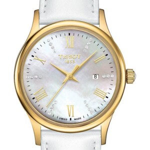 Damski zegarek Tissot o modelu T914.210.46.116.01 to kwintesencja elegancji i ekskluzywnego designu, które wyróżniają markę Tissot na światowym rynku zegarmistrzowskim. Złota, pozłacana koperta o średnicy 30mm oraz skórzany pasek w intensywnym żółtym kolorze zachwycają swoją prezencją, a jasna tarcza zdobiona masą perłową i diamentami przyciąga wzrok, nadając zegarkowi wyjątkowego charakteru. Szafirowe szkło odporne na zarysowania oraz solidne wykonanie z żółtego złota podkreślają luksusowy status tego akcesorium. Dwuletnia gwarancja stanowi dodatkowy atut tego eleganckiego modelu, idealnego dla każdej damy ceniącej sobie zarówno styl, jak i jakość.