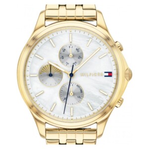 Piękny, damski zegarek Tommy Hilfiger Whitney ma stylową, złotą bransoletę i będzie dzięki temu ślicznie wyglądać na ręce. Zegarek ma wiele plusów. Jest on odporny na deszcz i zachlapania, więc podczas gorszej pogody nie musimy się o niego martwić. Jego mechanizm jest kwarcowy, zasilany baterią. Datownik jest rozbudowany - pokazuje dzień tygodnia, dzień miesiąca oraz oczywiście ma zegar 24-godzinny. Zegarek Tommy Hilfiger Whitney ma perłową tarczę, co nadaje mu bardzo modny i piękny wygląd. Szkiełko na tarczy jest mineralne, bardzo wysokiej jakości. Jest ono odporne na zarysowania, co daje nam gwarancję tego, że zegarek długo utrzyma się na naszej ręce w dobrym stanie. Bransoleta i koperta obie wykonane są ze stali szlachetnej, która charakteryzuje się najwyższym stopniem odporności na korozję.