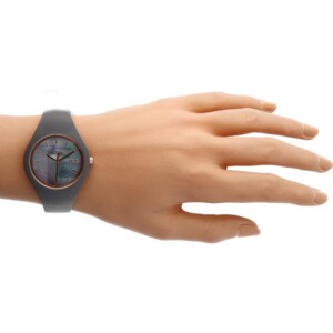ICE Watch Ice Pearl 016937 to bardzo praktyczny, sportowy, damski zegarek. Charakterystyczna, kauczukowa, elastyczna obudowa w uniwersalnym, szarym odcieniu w połączeniu z dodatkami w kolorze różowego złota nadają mu nowoczesny design. Uwagę przyciąga niebanalna, ciemna, okrągła, analogowa tarcza pokryta masą perłową. Wyraźnie odznaczają się na jej tle jasne, proste znaczniki godzin oraz wskazówki. Wykorzystane szkło mineralne zwiększa odporność zegarka na stłuczenia. Całość prezentuje się bardzo przejrzyście, wyjątkowo i elegancko. Choć styl tego zegarka przeznaczony jest raczej dla kobiety aktywnej, jednak spokojne, wyważone kolory i klasyka znajdą też szersze grono zwolenniczek. Ważnym atrybutem tego zegarka jest praktyczny mechanizm kwarcowy oraz wodoodporność 100m, co umożliwia pływanie i nawet nurkowanie! Zegarek też jest lekki, wygodny a plastyczna obudowa dobrze układa się na ręce. Zegarek Ice Watch Ice Pearl 016937 to doskonały wybór dla kobiety ceniącej swobodę, niezawodność i dodatki, które podkreślą jej klasę i wyjątkowy styl.
