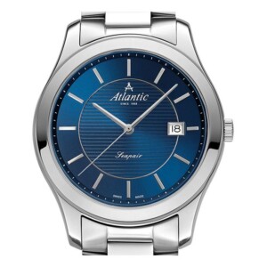Zegarek męski Atlantic Seapair 60335.41.51 utrzymany został w neutralnych, srebrnych kolorach, co pęknie będzie współgrało z codziennymi, jak i bardziej oficjalnymi stylizacjami. Koperta oraz bransoleta zostały wykonane ze stali szlachetnej, co daje gwarancję odporności na rdzewienie oraz inne bodźce zewnętrzne. Niebieski cyferblat posiada datownik, który ukazuje użytkownikowi obecny dzień miesiąca. Został on zabezpieczony szkiełkiem szafirowym, które daje odporność na lekkie zarysowania. Sercem czasomierzu jest mechanizm kwarcowy, który napędza pracę całego urządzenia. Jest on zasilany baterią. Zegarek ma określoną wodoszczelność na klasę 30m, dzięki czemu zabezpieczony jest przed zalaniem wskutek przypadkowego kontaktu z niewielką ilością wody. Nie należy z nim jednak pływać. Firma odgórnie daje na produkt dwuletnią gwarancję w razie napotkanych nieprzyjemności podczas noszenia.