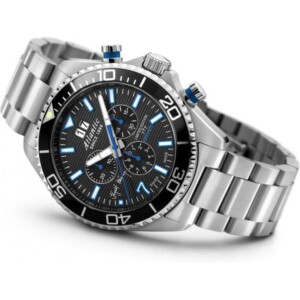 Chronograf/Stoper, Datownik, Fluorescencyjne wskazówki/indeksy, Zakręcana koronka, Zakręcany dekiel