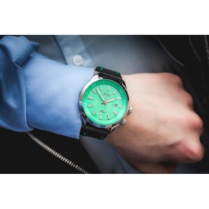 Fluorescencyjne wskazówki/indeksy - Pokrycie wskazówek i indeksów specjalną, fluorescencyjną farbą sprawia, że naświetlone w dzień, świecą w ciemności umożliwiając odczyt godziny w warunkach ograniczonej widoczności.