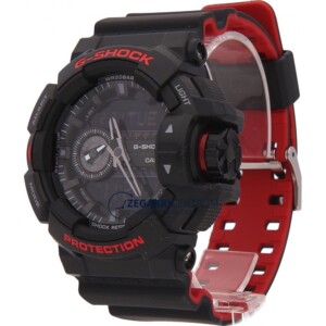 Casio GA-400HR-1A to kwintesencja sportowej elegancji charakterystycznej dla renomowanej marki. Z ciemną tarczą i okrągłą kopertą o średnicy 55mm, ten męski czasomierz wyróżnia się zarówno stylowym wyglądem jak i funkcjonalnością. Wytrzymałość i odporność na wstrząsy osiągana jest dzięki wykonaniu z solidnego tworzywa sztucznego oraz gumowego paska, co zapewnia komfort noszenia nawet podczas intensywnych aktywności. Fluorescencyjne wskazówki i indeksy sprawiają, że zegarek jest czytelny w każdych warunkach. Dodatkowe funkcje takie jak strefy czasowe czy podświetlana tarcza zwiększają jego praktyczne zastosowanie, czyniąc model GA-400HR-1A idealnym wyborem dla aktywnych mężczyzn ceniących zarówno funkcjonalność, jak i styl.