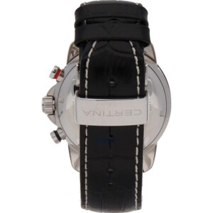 Certina DS Podium Big Chrono C0016471603700 to zegarek sportowo-elegancki posiadający czarny, skórzany pasek. Pasek ten doskonale współgra z tarczami chronografu widocznymi na cyferblacie. Koperta wykonana jest z antyalergicznej stali szlachetnej.