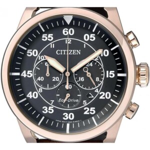 Elegancja połączona z nowoczesnymi technologiami definiuje zegarek męski Citizen CA4213-00E, który wyróżnia się w sportowo-eleganckim stylu. Model ten prezentuje się wyjątkowo stylowo dzięki pozłacanej różowym złotem, 45-milimetrowej kopercie oraz ciemnej, podświetlanej tarczy, która zapewnia doskonałą czytelność nawet w ciemnościach, dzięki fluorescencyjnym wskazówkom i indeksom. Brązowy, skórzany pasek dodaje klasycznego uroku, a stal szlachetna zapewnia trwałość i komfort użytkowania. Zegarek Citizen, znany z niezawodności i precyzji, jest przeznaczony dla mężczyzn ceniących elegancję z sportowym akcentem.