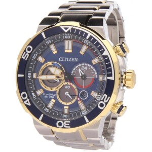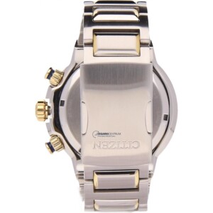 Zegarek męski Citizen model CA4254-53L uosabia energię i wyrafinowanie, które są synonimami marki, podnosząc styl użytkownika w każdej sportowej aktywności. Z pozłacanymi w żółtym złocie elementami na stalowej bransolecie i ciemną, podświetlaną tarczą, czasomierz ten przyciąga wzrok subtelnie mieniącym się blaskiem. Okrągła koperta o średnicy 45 mm zapewnia wyraźny i łatwo czytelny wyświetlacz, podkreślając zarazem męski, sportowy charakter zegarka. Wzmocnione mineralne szkło oraz wodoodporność do 200 metrów czynią go idealnym towarzyszem nawet podczas nurkowania z aqualungiem, a funkcje takie jak chronograf, stoper, datownik oraz fluorescencyjne wskazówki nadają temu modelowi wysoką funkcjonalność przy zachowaniu eleganckiego designu.