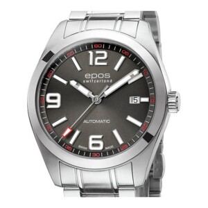 Koperta - stal koloru srebrnego, Tarcza - szara antracytowa, analogowa. Bransoleta - stal koloru srebrnego. Transparentny dekiel, Zakręcany dekiel - zapewnia większą szczelność zegarka. Datownik - specjalne pole na tarczy zegarka (zwykle w formie kwadratowej) wskazujące aktualną datę.Specyfikacja czasomierza Epos Sportive 3411131205430