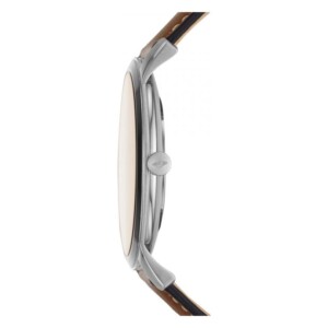 Model FS5619 od marki Fossil jest idealnym świadectwem eleganckiego połączenia klasyki z nowoczesnym designem, dedykowanym dla mężczyzn ceniących trendsetterstwo oraz wysoką jakość wykonania. Okrągła, stalowa koperta o średnicy 44mm zapewnia solidność, jednocześnie przyciągając wzrok swoim srebrnobrązowym połyskiem. Oczywiście nie można pominąć luksusowego, skórzanego paska, który dodaje zegarkowi szlachetności i komfortu noszenia. Szkło mineralne chroni jasną tarczę, co sprawia, że model ten jest nie tylko stylowy, ale i praktyczny. Co więcej, wodoodporność na poziomie 50m czyni go również odpornym towarzyszem codziennych wyzwań i okazjonalnych przygód na pływalni.