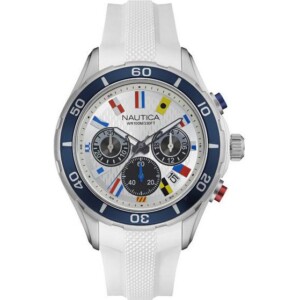 Zegarek męski Nautica model NAD18530G idealnie odzwierciedla prestiż marki oraz modny styl Fashion, łącząc funkcjonalność z dynamicznym designem. Ten elegancki czasomierz posiada jasną tarczę, której czytelność jest dodatkowo zwiększona przez fluorescencyjne wskazówki i indeksy. Wykonany ze stali szlachetnej z białym, gumowym paskiem, zegarek wyróżnia się solidnością i nowoczesnym wyglądem. Wodoodporność do 100m sprawia, że nadaje się do różnych aktywności wodnych, a chronograf i datownik umożliwiają precyzyjne mierzenie czasu i śledzenie daty, co z pewnością zainteresuje dynamicznych mężczyzn, ceniących modny akcent w codziennym ubiorze.