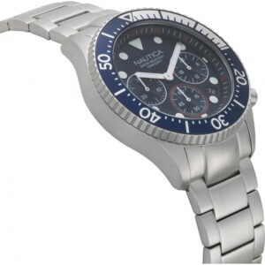 Elegancki i dynamiczny męski zegarek Nautica model NAPWPC006 to idealny wybór dla mężczyzn ceniących praktyczność i nowoczesny styl. Jego okrągła, 44-milimetrowa koperta ze stali szlachetnej, ciemna tarcza z chronografem, datownikiem oraz stoperem podkreślają sportowy charakter zegarka. Dodatkowe funkcje, takie jak zakręcana koronka i zakręcany dekiel, zapewniają wyższą ochronę mechanizmu kwarcowego zasilanego baterią. Wodoodporność do 100 metrów umożliwia użytkowanie podczas pływania czy nurkowania bez aqualungu. Bransoleta ze stali szlachetnej dodaje elegancji, tworząc doskonały dodatek zarówno do codziennych, jak i bardziej formalnych strojów. To wszystko w połączeniu z klasycznym designem i zaufaną jakością marki Nautica, której wartości są solidnie reprezentowane przez ten zegarek.