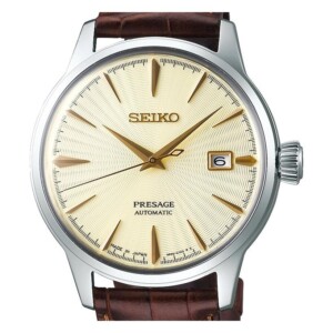 Budowa tego męskiego zegarka opiera się o smukłą kopertę ze stali szlachetnej oraz skórzany, brązowy pasek z przeszyciami. Co jednak najistotniejsze, sercem tego modelu jest mechanizm automatyczny, potrzebujący swojego „pana” do stałej pracy. Jego rezerwa chodu wynosi 48 godziny, ale uwierzcie, że „rozstanie” się z nim chociażby na chwile nie jest takie łatwe. Idealnie dobrany rozmiar koperty i mocowanie wpasowuje się w męski nadgarstek, pozwalając zapomnieć o swojej obecności. Nie zapominając jednak, że głównym zadaniem tego zegarka jest pokazywanie czasu, cyferblat wyposażono w indeksy liniowe oraz wskazówki w kolorze żółtego złota. Dodatkową funkcją jaką znajdziemy z zegarku Seiko SRPC99J1 jest datownik, pokazujący obecny dzień miesiąca. Chronometr ten pochodzi z kolekcji Presage i jeżeli dosłownie mamy rozumieć jej znaczenie, to zapewniamy, że właśnie ten model jest zapowiedzią komfortu i spełniania wszystkich Twoich oczekiwań.