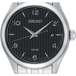 Okrągła koperta oraz bransoleta zegarka Seiko SNE489P1 wykonane został ze stali szlachetnej, wysoko cenionej na rynku zegarmistrzowskiej za właściwości antyalergiczne i nie wywoływanie podrażnień skóry. Bez wątpienia to właśnie ten czasomierz szczególnie polecany jest dla osób, którym zależy na dużej czytelności tarczy. Umieszczone na niej cyfry arabskie i wskazówki pozwalają na szybkie odczytanie danych, dodatkowo podkreślając datownik pokazujący obecny dzień miesiąca. Wszystkie detale cyferblatu zamknięto pod szkłem mineralnym. Dużym atutem tego męskiego zegarka jest również jego wodoodporność wynosząca 100 metrów, pozwalająca na korzystanie z modelu zarówno podczas codziennych czynności, biznesowych spotkań jak i urlopowego odpoczynku.