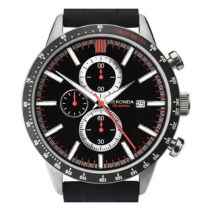Jeżeli lubisz czasomierze w sportowym, lecz nietuzinkowym designie, które przepełnione są najważniejszymi funkcjami to poznaj idealną propozycję właśnie dla Ciebie- zegarek Sekonda 1594. Pochodzi on z czołowej kolekcji tego producenta, Sekonda Chronograph i jak już sama nazwa wskazuje, to właśnie tarcze tej funkcji dominują na analogowym cyferblacie. Zestawiono je z wyraźnymi indeksami liniowymi oraz wskazówkami, a na pierścieniu umieszczono dodatkowo tarczę tachymetru. Za wszystkie funkcje odpowiada kwarcowy mechanizm, który stanowi niezawodne serce tego czasomierza.