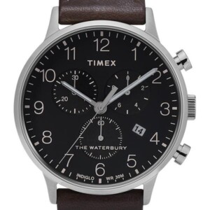 Timex Waterbury TW2T28200 to klasyczny męski zegarek o ponadczasowym stylu, który perfekcyjnie wkomponuje się w outfity na prawie każdą okazję, od oficjalnych po zupełnie codzienne. Skórzany brązowy pasek, srebrna koperta ze stali szlachetnej i czarna tarcza z chronografem i srebrnymi wskazówkami stanowią idealne i wyjątkowo gustowne połączenie odpowiednie dla mężczyzny w każdym wieku. Dzięki autorskiemu systemowi podświetlenia INDIGLO, odczytanie godziny nie stanowi najmniejszego problemu nawet w zupełnej ciemności, co znacznie podności funkcjonalność urządzenia, a ze względu na zastosowanie szkiełka mineralnego nie ma potrzeby obawiać się o ewentualne zarysowania. Zasilany baterią kwarcowy mechanizm Timex Waterbury TW2T28200 to sprawdzona i uznana przez duże grono użytkowników konstrukcja, która zapewnia długoletnie działanie zegarka bez usterek. Wodoszczelność do 30 metrów zapewnia odporność na wszelkie przypadkowe zachlapania. Ponadto producent udziela na swój produkt 3-letniej gwarancji.