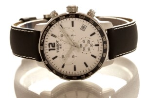 Tissot Quickster Męskie T0954171603700 to niebanalny męski zegarek o sportowo-eleganckim designie. W stalowej kopercie, umieszczonej na skórzanym pasku, zamknięty został szwajcarski mechanizm kwarcowy, napędzany baterią. Jasna tarcza udekorowana została czarnymi indeksami liniowymi oraz cyfrą na godzinie dwunastej. Dodatkowo jasne wskazówki dodają blasku całej kompozycji. Model ten wyposażony został w funkcję chronografu, stopera oraz tachymetru. Ten nowatorski czasomierz to propozycja dla dynamicznych mężczyzn, ceniących dobrze wyglądające dodatki.