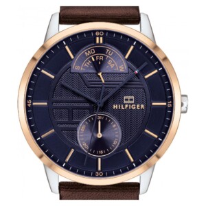 Urządzenie posiada również sub-tarczę datowników, które zadaniem jest ukazywanie użytkownikowi zegarka dni tygodnia oraz miesiąca. Koperta w całości wykonana została ze stali szlachetnej. Tego rodzaju tworzywo daje wysoka gwarancję odporności na zarysowania, obtłuczenia oraz obtarcia skóry. Na kopercie zamieszczona została piękna, pozłacana tarcza, w całości pokryta szkłem mineralnym. Szkło to ma za zadanie chronić tarczę przed obtłuczeniami oraz zarysowaniami. Dzięki takim zabezpieczeniom nie będziesz musiał martwić się o stan swojego zegarka. Ciesz się wspaniałym czasomierzem Tommy Hilfiger Hunter 1791605 już teraz i nie zwlekaj z zakupem!