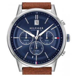 Tommy Hilfiger 1791629 to klasyczny męski czasomierz. Elegancki, z dobrą widocznością i czytelnością. Zegarek niczym z marzeń oraz snów. Jest to czasomierz kwarcowy, z dwuletnią gwarancją. Wyposażono go w kopertę o wodoszczelności 50 metrów, czyli 5 barów. Kolor koperty jest srebrny, a została ona wykonana ze stali. Szerokość koperty wynosi 44 milimetry. Grubość koperty to 11 milimetrów. Kolor tarczy jest niebieski. Wskazanie czasu jest analogowie, a szkiełko jest mineralne. Jakość takiego czasomierza jest doskonała, a klienci chętnie po taki zegarek sięgają i chcą się nim posiłkować. Pasek jest brązowy, ładnie zapinany na sprzączkę. Zegarek ma klasyczny styl, prezentuje się elegancko, jest lekki, czyli waży jedynie 65 gramów. Uroda tego zegarka to jego największy atut. Chcesz jakości, stylu i trwałości? Koniecznie kup zegarek marki Tommy Hilfiger. Z nim podbijesz cały świat - do pracy, po pracy i od święta można go nosić nieustannie, dzień w dzień, dzień po dniu. Pora zatem kupić świetny czasomierz w dobrej cenie. Koperta - stal koloru srebrnego.