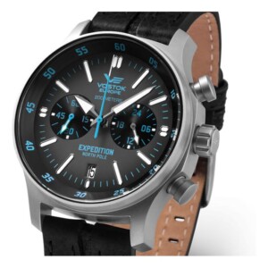 Zegarek Vostok Europe Expedition męski VK64-592A561 wykonany został z wysokiej jakości stali szlachetnej 316 l. Jest przyjazny dla skóry, nie wywołuje reakcji alergicznych ani podrażnień. Ma grafitową, analogową tarczę. Okrągła koperta mająca średnicę 43 mm. Na tarczy umieszczony został datownik, ukazujący dzień miesiąca. Na teleskopach zamocowany został elegancki pasek skórzany w czarnym kolorze. Sercem zegarka jest mechanizm kwarcowy, napędzany za pomocą baterii.