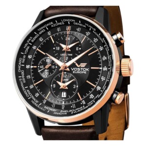 Zegarek Vostok Europe Limousine męski YM26-5603255 został stworzony z antyalergicznej stali szlachetnej. Posiada okrągłą kopertę o średnicy 45 mm. Na tarczy umieszczony został datownik, ukazujący aktualną datę. W kopercie został zbudowany mechanizm kwarcowy, napędzany za pomocą baterii. Ciemna tarcza została pokryta szkłem mineralnym, wysoce odpornym na zniszczenia. Zegarek jest odporny na zachlapanie, umożliwia pływanie powierzchniowe. Posiada elegancki czarny skórzany pasek, który dobrze się trzyma na nadgarstku. Zegarek został pozłacany w kolorze różowego złota. Kolor naniesiony został metodą próżniową PVD/IP, kolor zachowuje swoją trwałość nawet do dekady. Zegarek Vostok Europe Limousine męski YM26-5603255 wyposażony został w stoper, który umożliwia precyzyjny pomiar czasu. Posiada podświetlenie trytowe GTLS. Umożliwia odczytanie godziny w różnych strefach czasowych. Ma wbudowaną pamięć okrążeń.W zestawie: zegarek, oryginalne opakowanie producenta, papierowa instrukcja obsługi, karta gwarancyjna z dowodem zakupu Gwarancja na 2 lata.